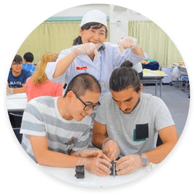 私たちの体験教室では、英語に堪能な講師が、お寿司の作り方だけでなく、寿司の歴史・マナー・雑学などを分かりやすく解説します。英語で丁寧にサポートすることで、初めて寿司を作る外国人のお客様でも安心して楽しめるプログラムになっています。